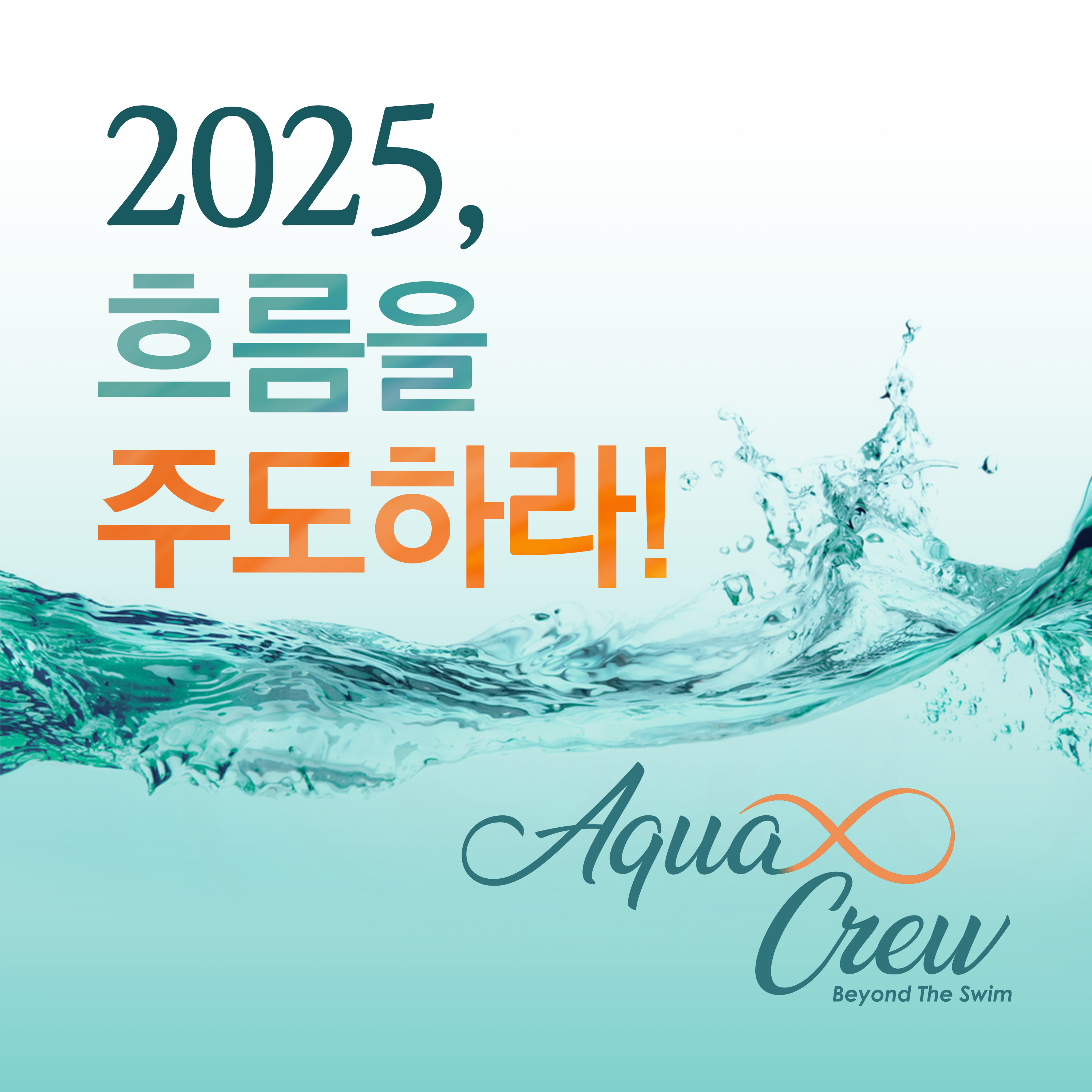 우리 모두 이 슬로건처럼 2025년에는 수영계의 흐름을 주도하는 아쿠아크루가 되기를 기대합니다!